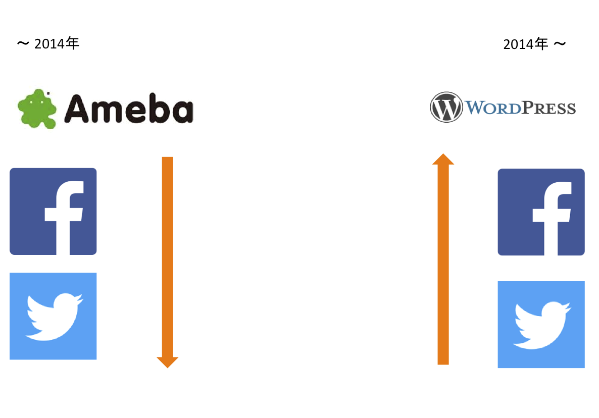 ちょっと年数は定かじゃないんだけど、2014年より前くらいは、ブログからスタートしてた人が多くって、で、Facebook使い出して、Twitterをやり出したと思う。( アカウントを取ったとかじゃなく、ちゃんと使ってるってことね。)
