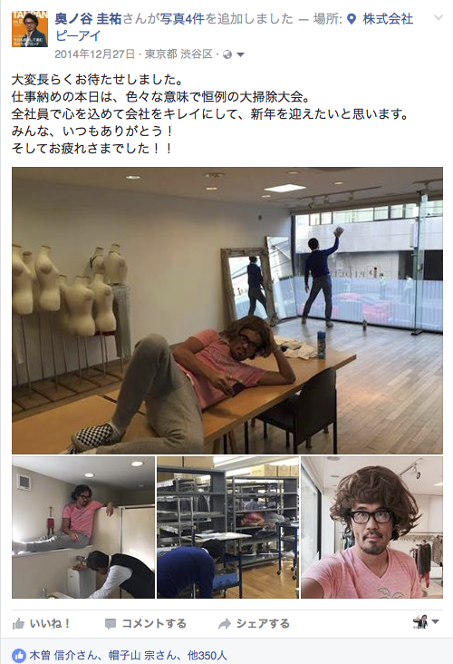 ピーアイ大掃除大会の映像をみなさんにお届け!③ #短パン社長 pic.twitter.com/Vz3ZWmBL8Q— 短パン社長 奥ノ谷 圭祐 (@Okunoya_jr) December 28, 2016