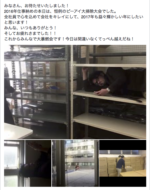 ピーアイ大掃除大会の映像をみなさんにお届け!④ #短パン社長 pic.twitter.com/PkX0Rbd0J2— 短パン社長 奥ノ谷 圭祐 (@Okunoya_jr) December 28, 2016