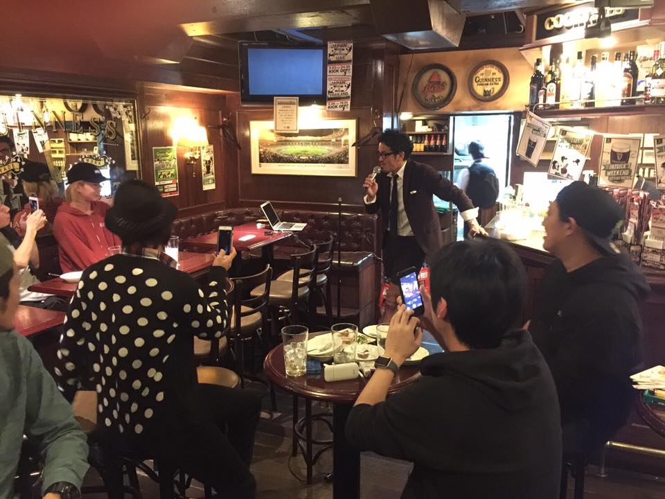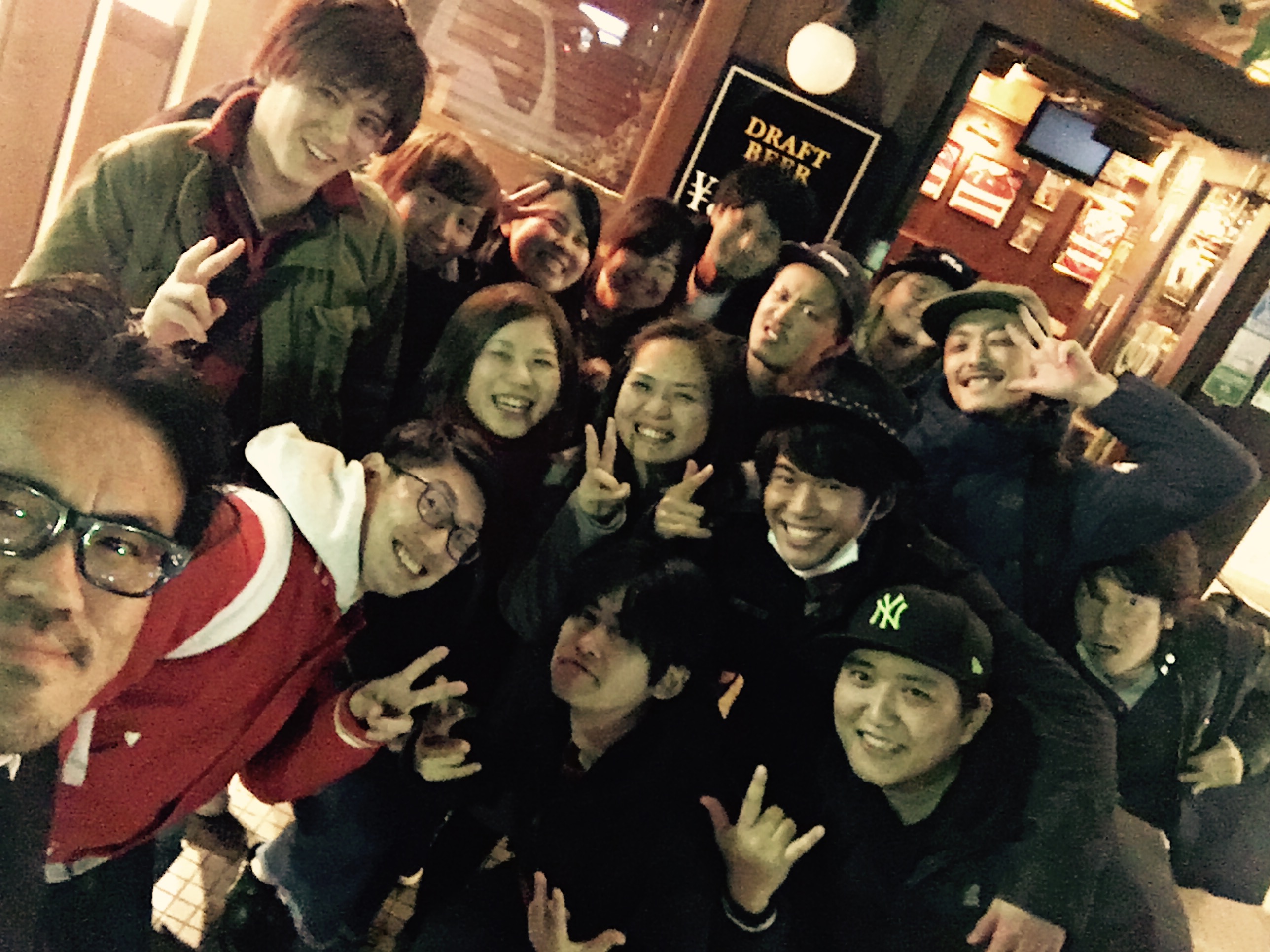 はい。一昨日の晩はHUB外苑前店を貸し切って、チームパイセンTVスタッフと打ち上げでした。しかも主催者は演者のボク。更に全部ボクのおごり(笑)座りで65名収容のお店をたった16名で貸し切りました。