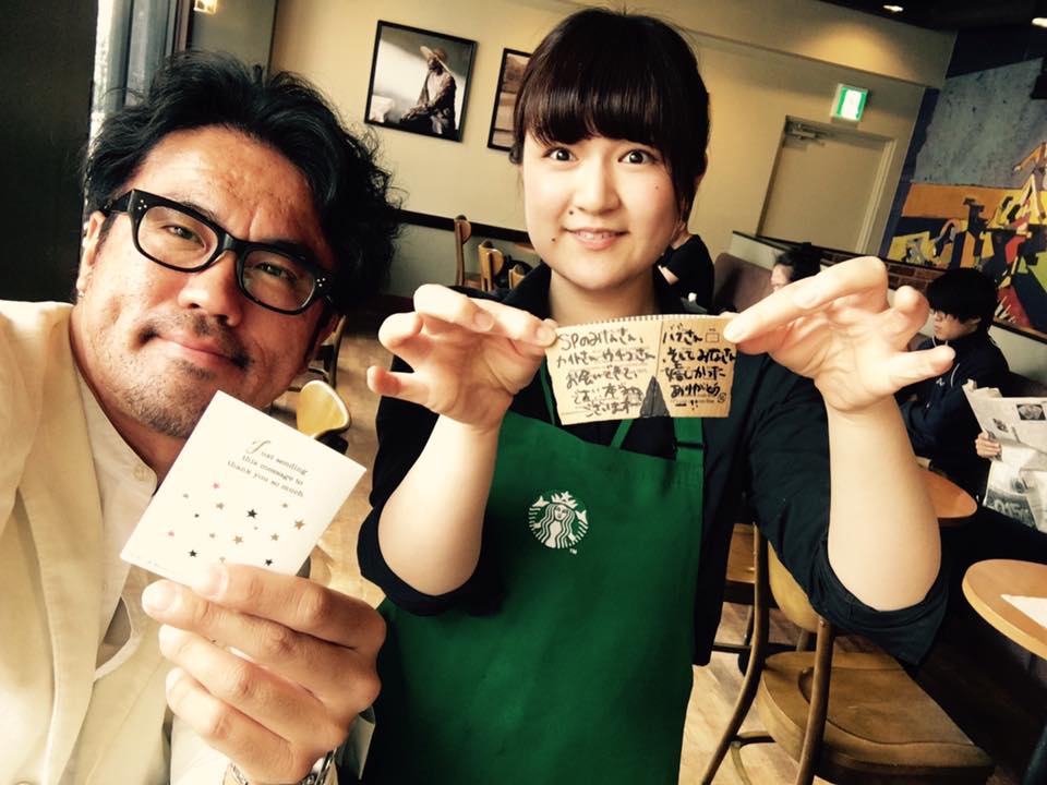 それがいつも嬉しくて毎回ボクが投稿するもんだから、みんながここのスタバに行きたくなって、松林のかっちゃんや、ぼっち、カベシタなど、SNS上で見るメンバーが次々に来店し、あ。見た事ある!って。彼女はボクの仲良しな人たちの投稿も見るようになった。そしてその人に合ったメッセージ。また、全然知らなくても「 短パン社長の! 」と言えば、最高の笑顔で出迎えてくれる。今はその人数が増えに増えて、全国に1,000店舗以上あるスタバの中でもとっても有名なスタバになったという。