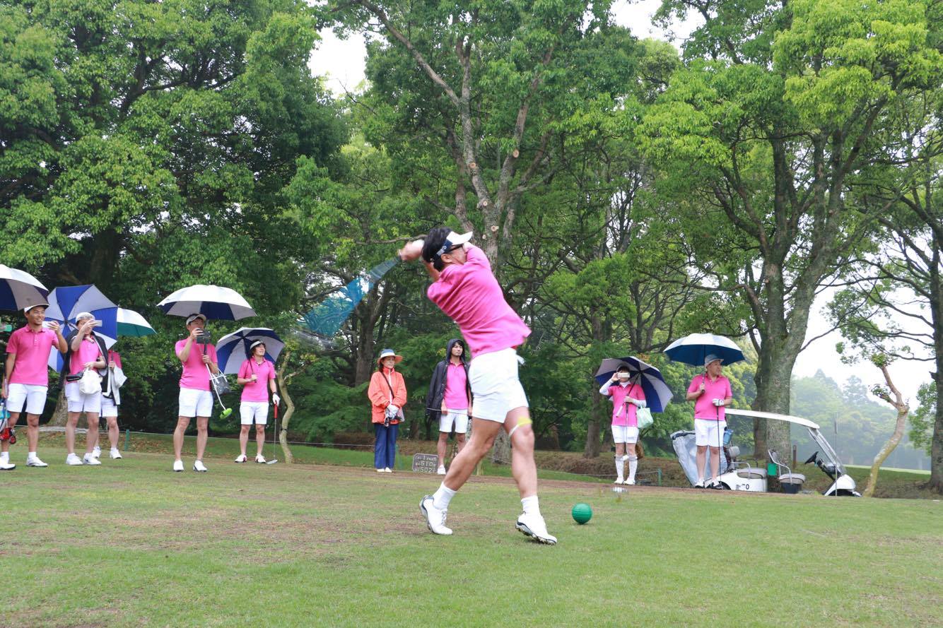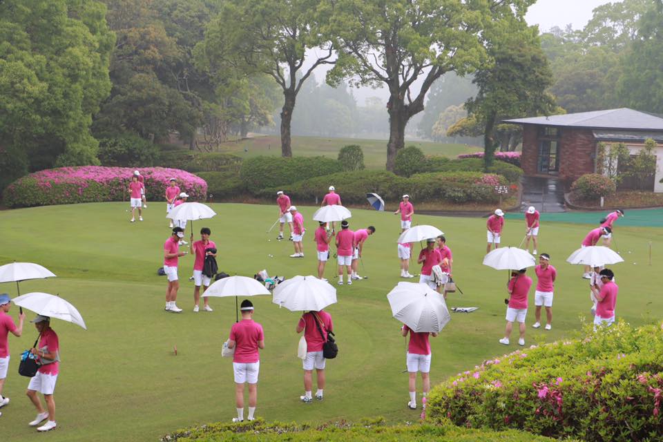 1回目もそうだったけど、2回目はそれ以上にヤバい。Keisuke okunoyaのゴルフコンパ参加者限定の鮮やかなピンク色がゴルフ場のつつじの花にマッチして余計目立つという。天気はイマイチでしたが(イマイチどろこか土砂降り )終始笑顔が絶えず、大盛り上がりで終わる事ができました。