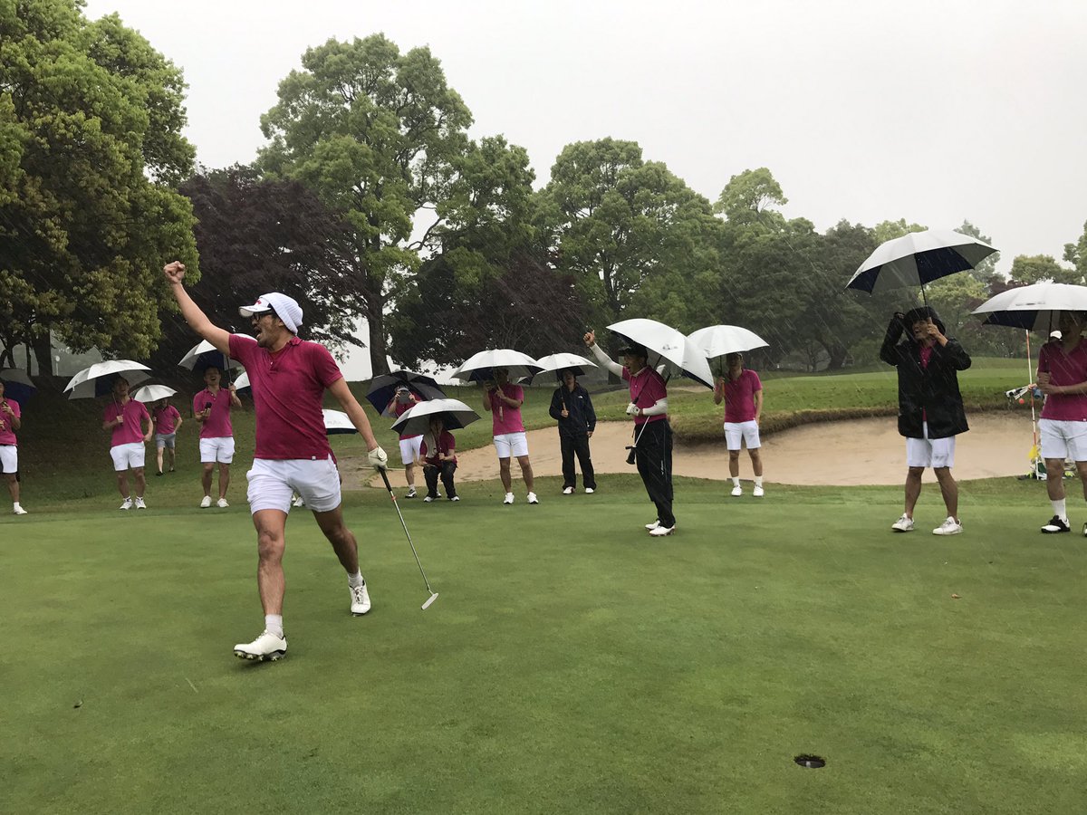 「チーム短パンゴルフコンペ」最終ホール最後のパットは短パン社長!