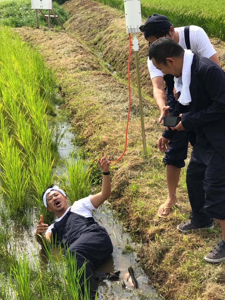 みんなで植えた #短パン田植え部 の田んぼにきたよー。#短パン社長 の感動のコメント。それにしても、田んぼの向こう側にいるのにこの通る声。ピンマイク付けてないのに・・・。