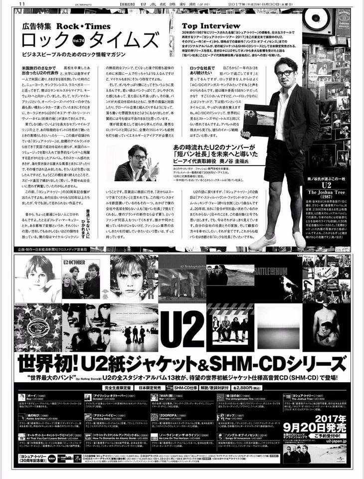 「 ロックな音楽は詳しくないけど、ロックな社長である事は間違いない。」今度は日経新聞に掲載されました。