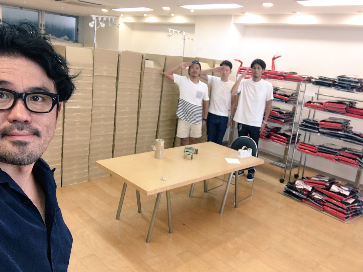 #Keisukeokunoya 発送作業は順調です!こんな感じで楽しくやらせていただいてます!あとは間違えてませんように!今回は1色のみだからサイズだけ気をつければ大丈夫!引き続きがんばります! #短パン社長 #ワタニー #トラヤ #ヒラヤマ pic.twitter.com/RLt08sLi7D