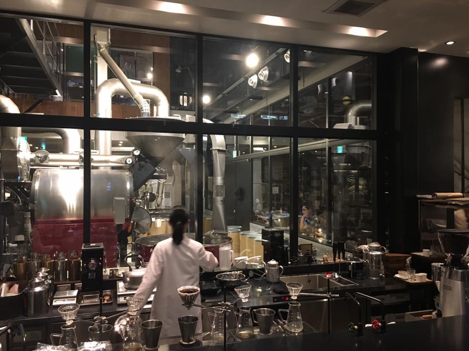 まずお店を入ると、スタッフみんな、白衣を着てお出迎え。その白衣も普通の白衣ではなく、男性は水色( 白衣ちゃうやん(笑))女性は白。さすがにジロジロは見れないけど、ところどころにステッチが入ってて、ボタンも可愛い。それもそのはず、店内に焙煎工場と研究施設が併設され、そうか、研究施設という事で、あえて博士のようなイメージを持たせてるんだと後から気づく。