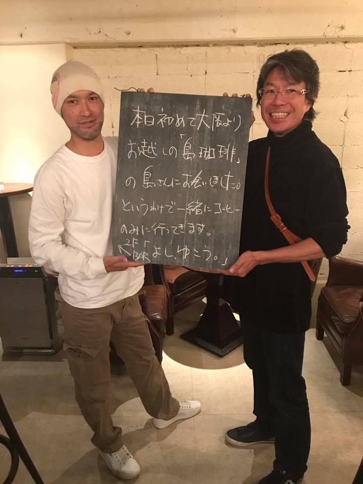 もう既に短パンコーヒー第2弾の味は決まっているんですが、せっかく島さんが来てくれたんで流行りの珈琲屋の視察も兼ねてね。これでまた高槻のお店に戻り、たくさんの人達により愛情のこもったコーヒーを淹れてくれる事でしょう。