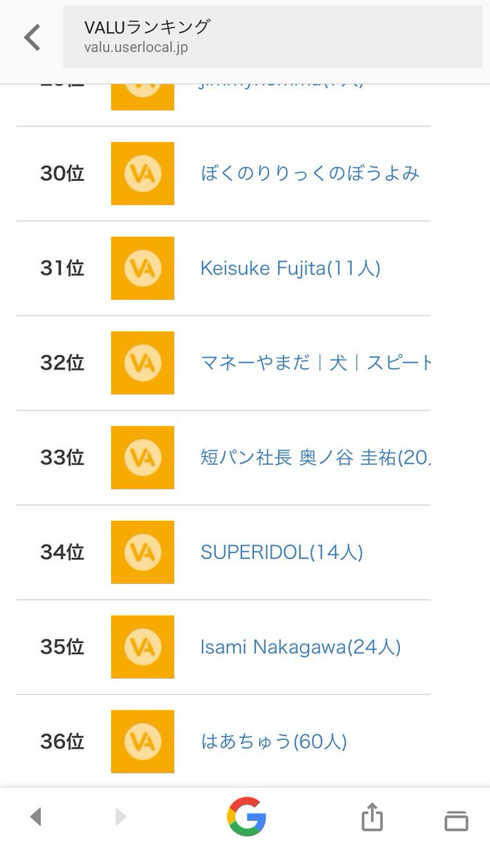VALU時価総額ランキングもはあちゅう超えたよ!(笑)