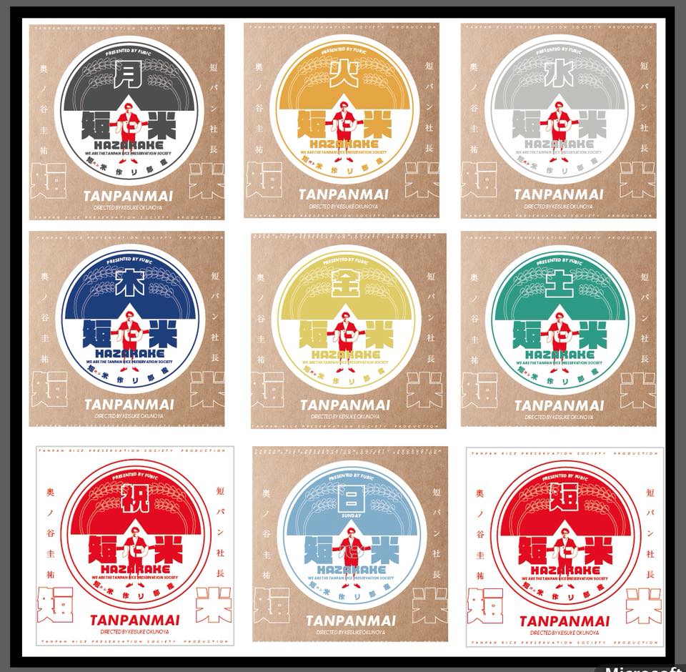 その箱には短パン米のロゴが入り、更に中を開けると1つ1つデザイン違いの帯が真空パックのお米に巻かれています。曜日ごとに食べてほしいという思いで作りました。もったいなくて食べれないかもね(笑)自宅やお店で飾ってほしいくらいだもん。