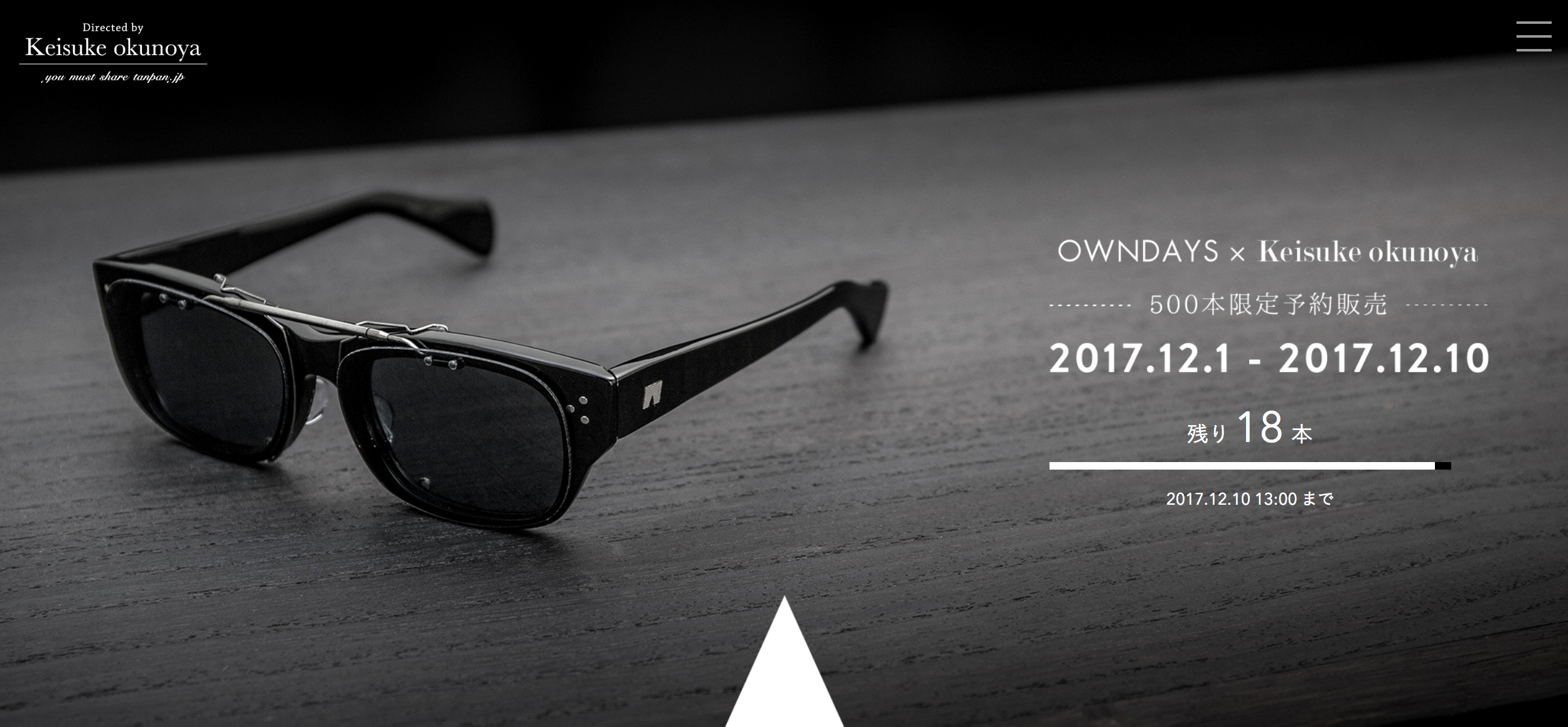 限定500本の #Keisukeokunoya × #OWNDAYS. のサングラス。もしかしたら完売は厳しい?とも思われていたようですが、逆に欲しくても買えない人が出てきそうな勢いです。雰囲気からすると、あと50本ぐらいかな?さっきはサイ…