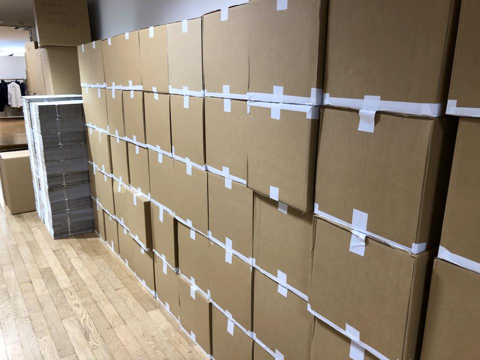 はい。遂に短パン米が納品されてきました!長野県から1人、佐藤くんが約5時間かけてクルマで運んでくれました!洋服の横に並んでるこの大量のお米が入った段ボールを見て、あれ?あれれ?洋服は?なんか変だぞ?ウチって何扱ってる会社だっけ?って正直思った(笑)