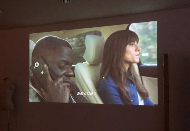 早速会社に戻り、試しに配信されたばかりの映画ゲットアウト( アカデミー賞脚本賞受賞 )を会社で鑑賞。100inchまで映せるし、Bluetoothでスピーカーをつなげたらあっという間に映画館のような臨場感が味わえちゃう。