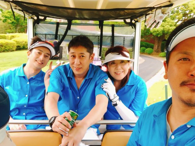 もう楽しい以外に何ものでもない。( これでもまだほんの一部だからね )こんなコンペ見た事ないでしょ。一応クラブは持ってるんだけど、写真を見る限りスマホを持ってる時間の方が間違いなく長い。ゴルフをするというよりも、お揃いの衣装を着て、みんなで徹底的に楽しむ。