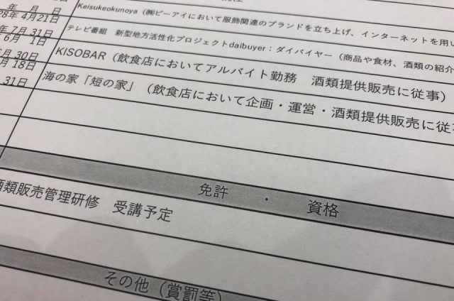 また、お酒に関する履歴書も提出するんですが、ダイバイヤーや短の家、そしてまさかkisobarでアルバイトした経験がここにきて活かされると思ってたなかったわ!(笑)