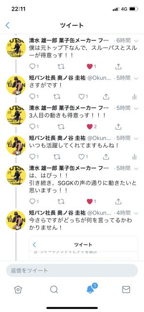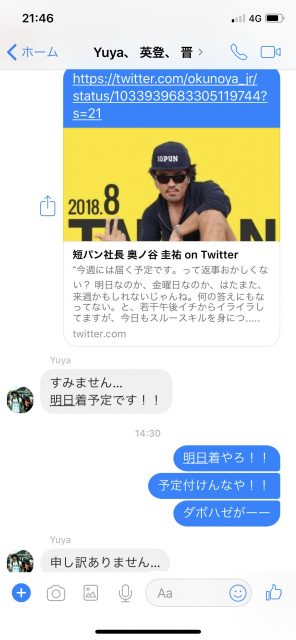 全て真っ正面に受け止めてすみません!元ゴールキーパーなんで!!— 短パン社長 奥ノ谷 圭祐 (@Okunoya_jr) August 27, 2018