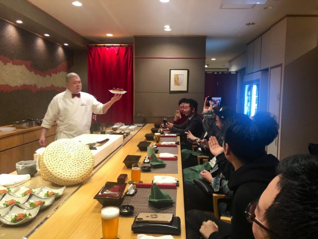 で、この日は同じ寿司職人のケイスケ( おたる政寿司の何代目? )も誘いました。おたるからわざわざ参加。こう見えて?勉強熱心なので、今一番人気のお寿司屋は行った方がいいだろうなーって思ったし、本人も行きたがってたし。