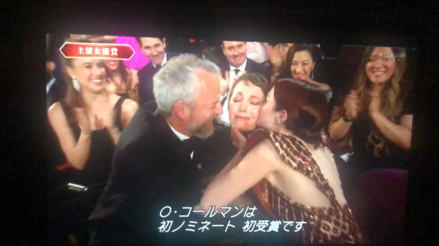 あ。これ、全部タクシーの中でPCを撮影したので写真はボケまくってますが、先日のアカデミー賞授賞式で「 女王陛下のお気に入り 」のオリヴィア・コールマンが主演女優賞を初受賞した時の様子をツイートしたもの。もしかしたらね。本人以上に歓喜していたんじゃないかっていうのが共演したエマ・ストーン。スピーチ中もずっと立って泣いていました。
