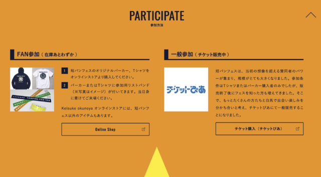 先日発売開始したチケットぴあで購入できますが、みんなと一体感を感じたいのであれば、短パンフェスオリジナルTシャツ、もしくはパーカーをオススメします。と言っても、もう在庫は残すところわずか。めっちゃ歯抜けしちゃってますが、もしよかったら是非。