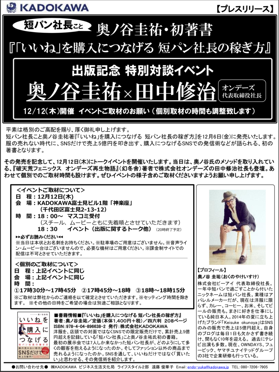 遂に本日、僕の盟友でOWNDAYS CTO(チーフ短パンオフィサー)オクノヤケイスケこと、短パン社長の初著作が発売‼︎