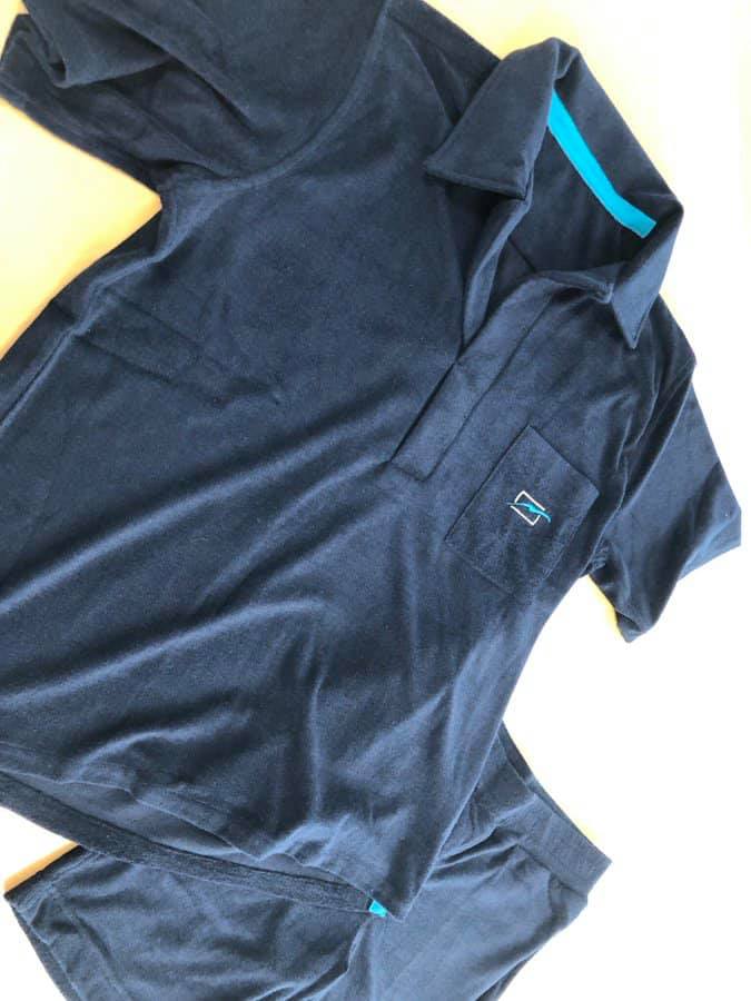 昨年販売した半袖、短パンセットアップと同じ素材になります。XS、M、Lのスリーサイズ展開です。