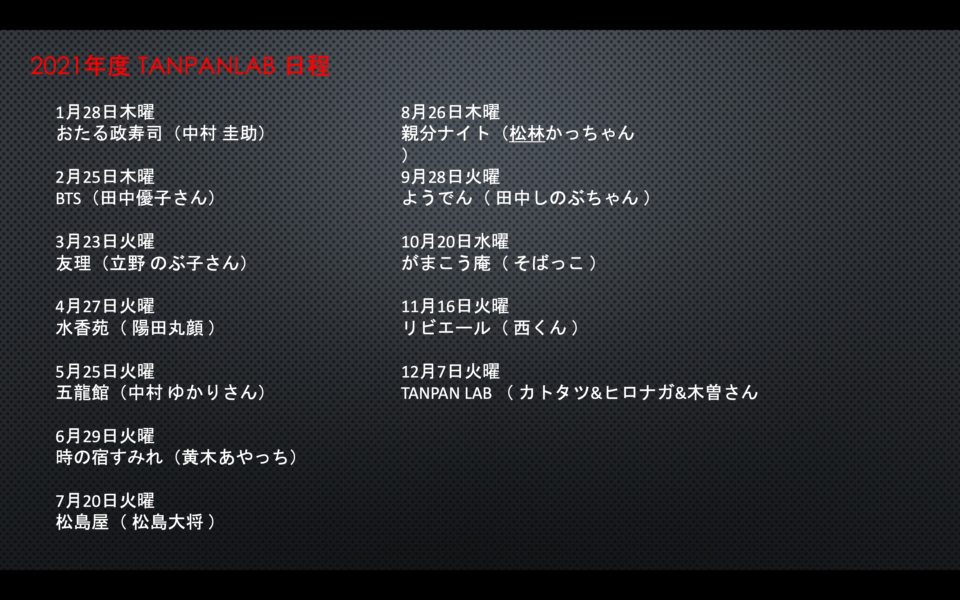 2021年 TANPAN LAB食のイベント