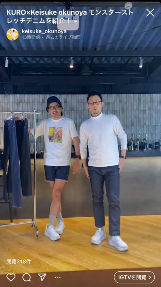 KURO×Keisukeokunoyaのデニムを紹介します!モンスターストレッチのスゴさを伝えられるかなー。緊張するー。 pic.twitter.com/ZIQ5tfo4VI— 短パン社長 TANPANLAB (@Okunoya_jr) May 12, 2021