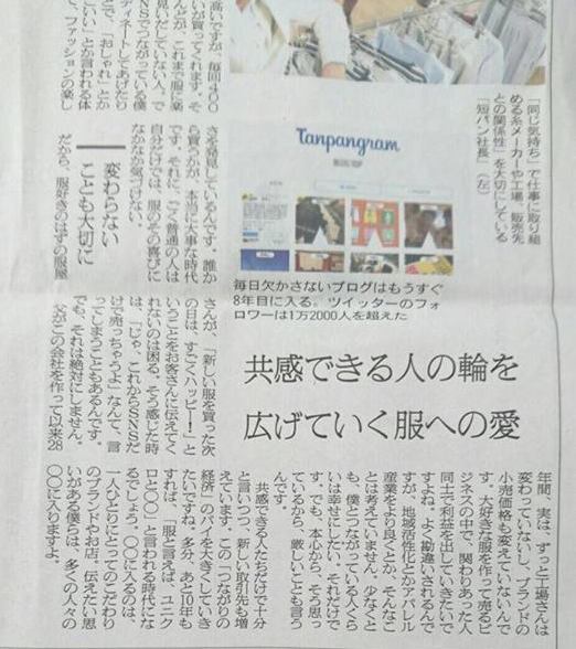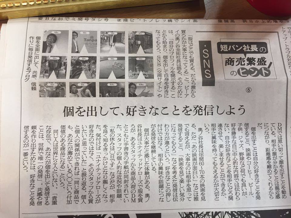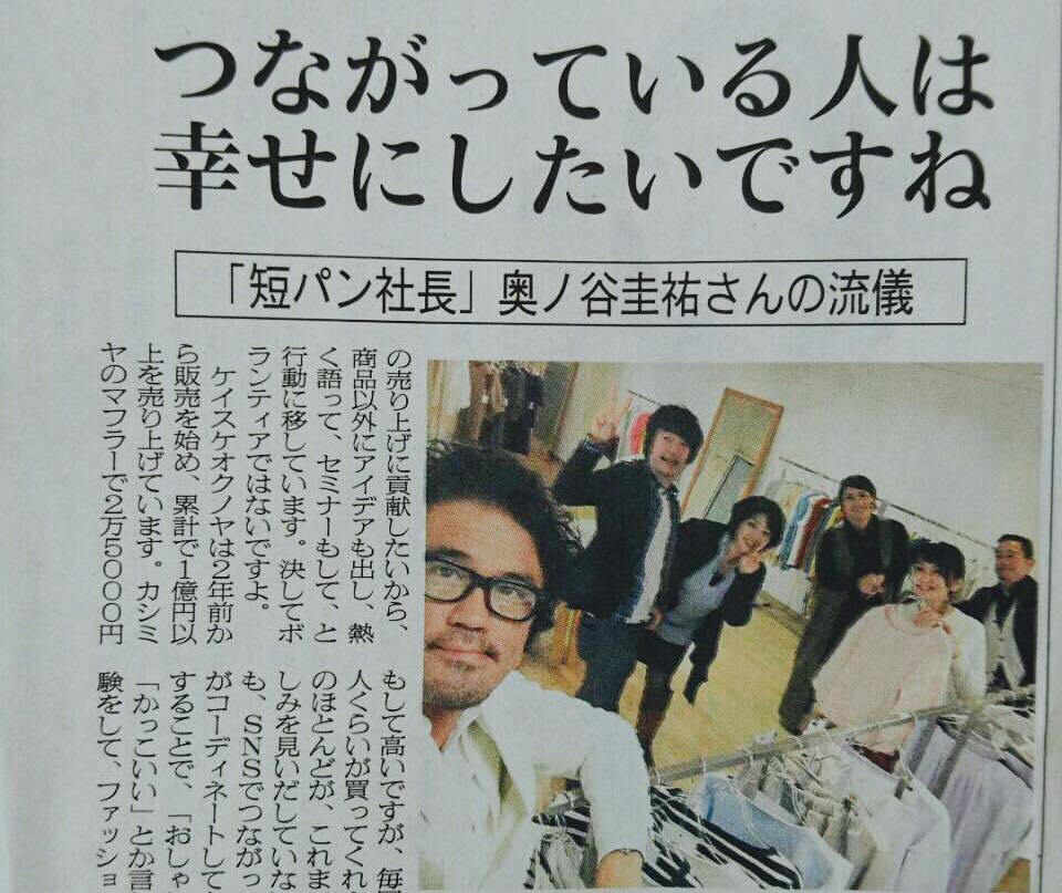 繊研新聞の元旦号にカラーで大きく掲載されました!【 短パン社長 奥ノ谷圭祐の仕事の流儀 】