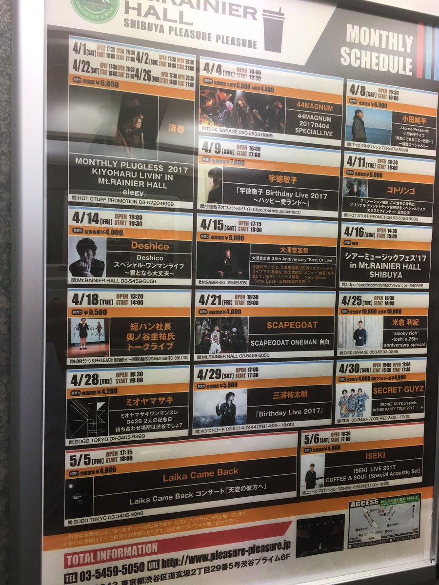 月のスケジュール。ボクのチケットが2番目に高いという(笑)