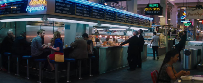 グランドセントラルマーケット内をセブとミアがデートしてるシーンが一瞬だけ映りますが、まさかのここも、さっき紹介したエンジェル・フライト・レールウェイのスグ側にあり、これまたビックリ。