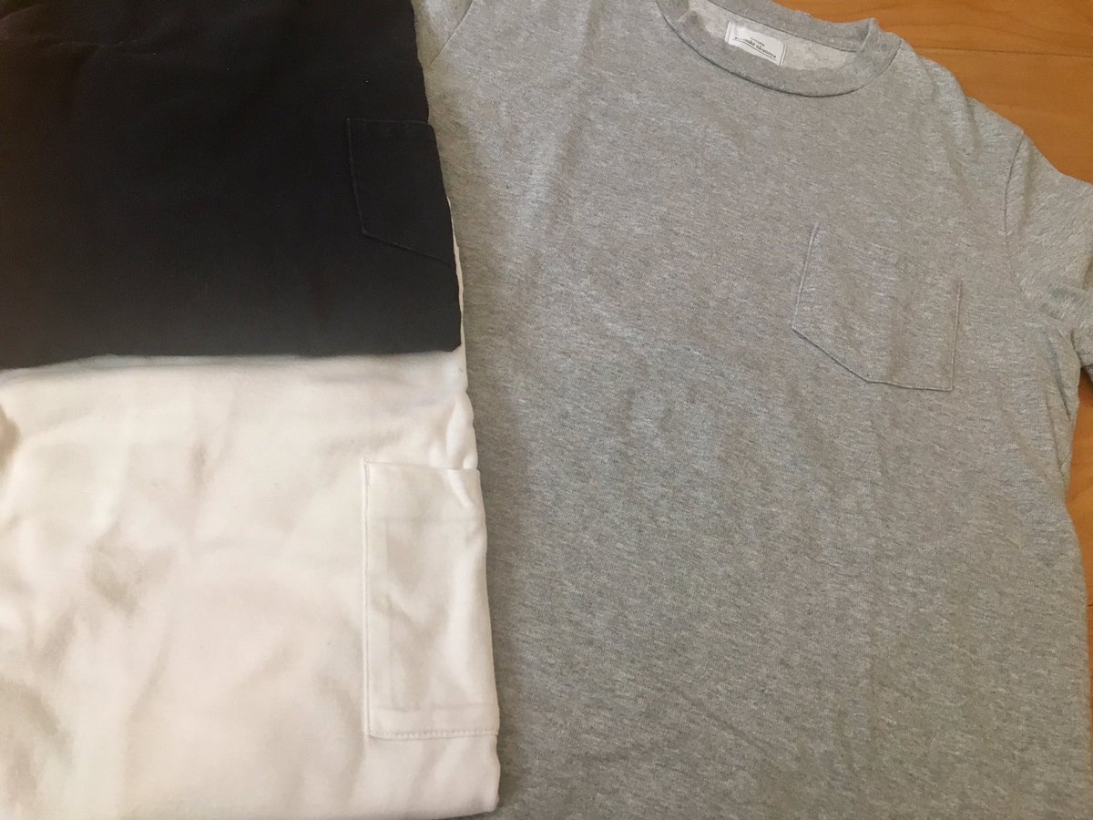 で、せっかくなんでね。家に溜まっているTシャツを大量に洗濯しに行きました。そしたらさ。ツイートにあるようにボクが持ってるTシャツはカタチは違えどもほとんど無地ばっかり。しかも色もホワイト、ネイビー、グレーの3色。そう。それだけあれば事足りるって話です。たまーに差し色( 明るい色 )も買うけど、大体そうだなー。1年着ると飽きる。