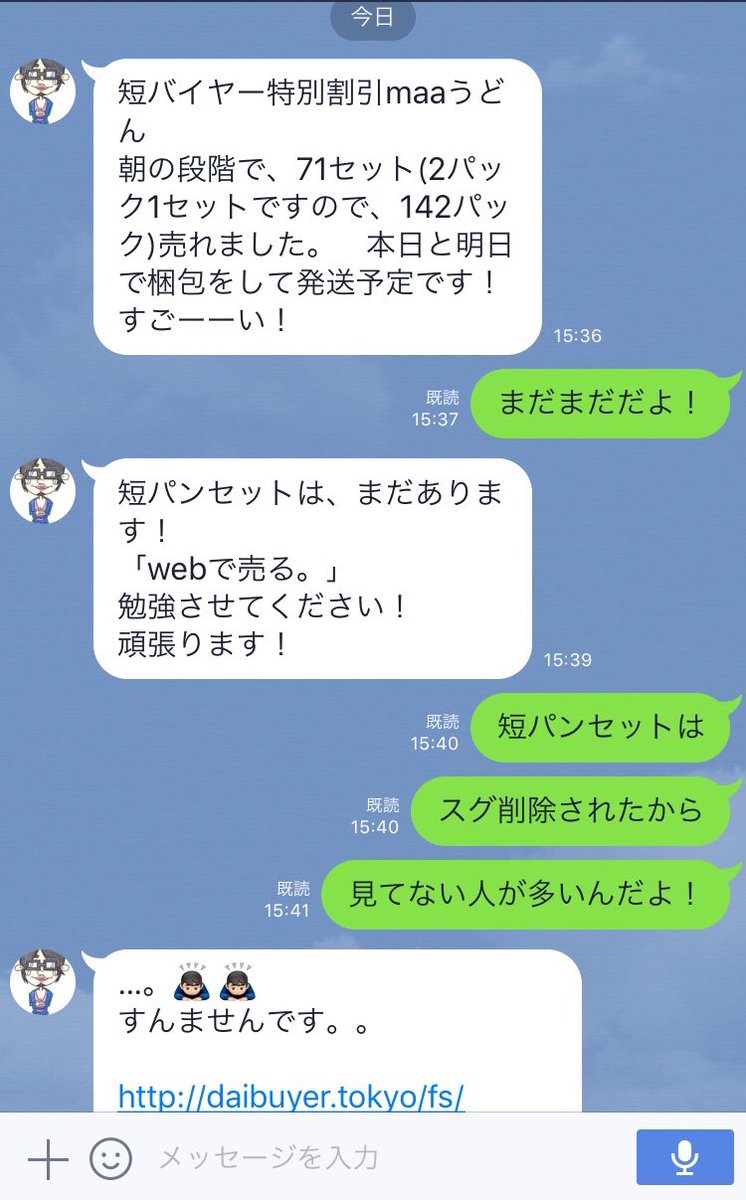 ダイバイヤーの福岡君とのLINEのやりとり