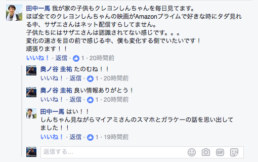 そしてカズマもボクのFacebookの投稿を見て、こんなコメントをしてくれました。