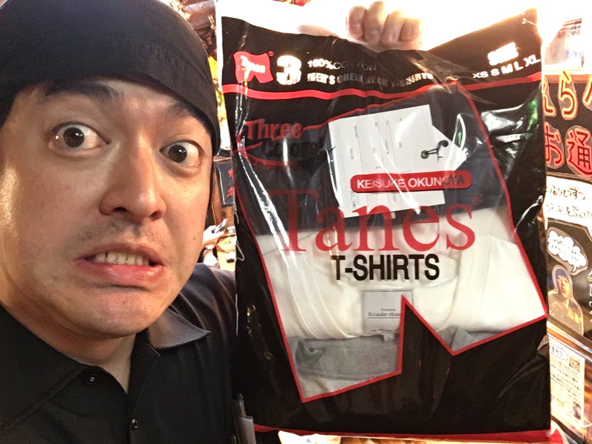 お店の常連のお客さまでもある短パン社長 @keisuke_okunoya のブランド #keisukeokunoya の第2弾 パックTシャツが届きました☻