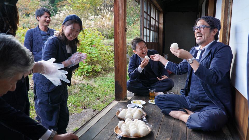田植え部女子たちがみんなで握ってくれたおにぎりをキャプテンのボクが一番最初に食べようとしたその瞬間、まさかのフュービックの社長、黒川さんが先に食べてしまったところをしっかりと陽田がカメラでとらえてました!