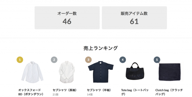 で、生々しい話ですが、先日発表したKeisuke okunoyaの商品の昨日1日で予約が入った商品とその数量です。