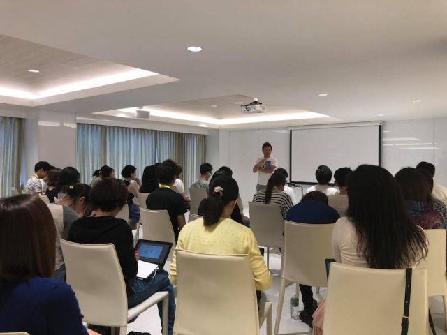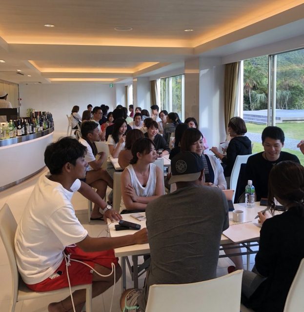 この最高のロケーションにも関わらず、目の前に広がる海にも行かず、約3時間のアツく講演をしましたが、話そうと思ったこと半分しか話せてないよー!足りないよー!(笑)な初日でした。
