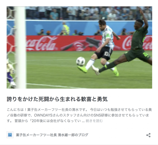 そして清水さん。個人的には一番好きなブログ。なぜなら話題が旬でもあるワールドカップだから。既に予選落ちしてしまいましたが、アルゼンチンのメッシについてアツく語ってくれてます。清水さんだからこそ書ける内容。最高です。