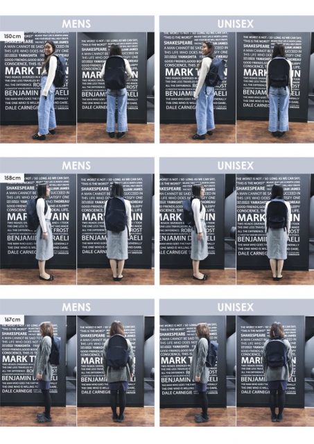 女性がメンズ、ユニセックスタイプを背負うとこんな感じ!