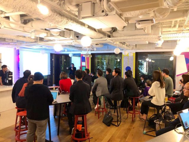 WeWorkと契約してる会社の人は特権として自由に聞くことができるんですが( つーか、フリースペースでやってるし、ここ通らないと中に入れないし出れないというのもある笑 )みんながみんな「 何だアイツ? 」「 誰この人? 」って立ち止まり、更に話に引き込まれ、みんなが立ったまま聞いてくれてるがマジで気持ちいい。だから最終的にあんな人数になったんだろうなー。