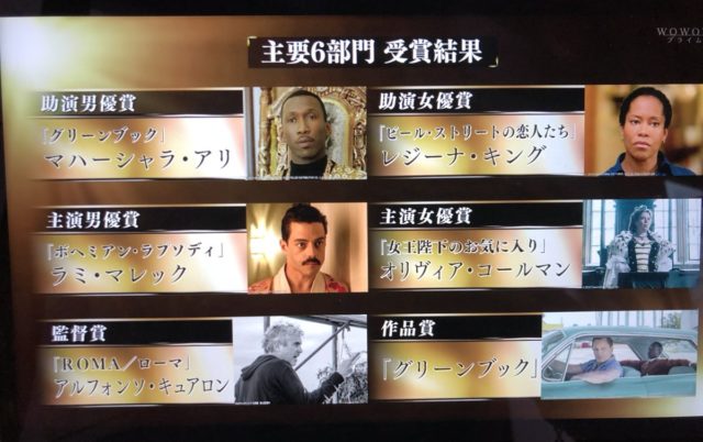 助演男優賞は『グリーンブック』のマハーシャ・アリ。一昨年のムーンライトに続き2度目の受賞。助演女優賞はレジーナ・キング『ビール・ストリートの恋人たち』初の受賞。観に行ってないんだよねー。この映画。そして監督賞は、『ROMA/ローマ』アルフォンソ・キュアロン。昨日もブログで触れたけどNetflixの映画です。