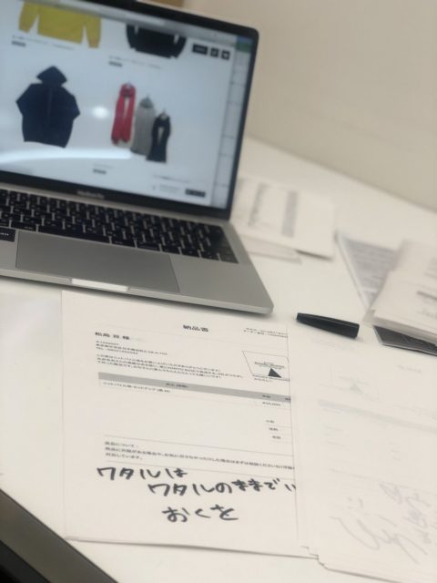 来週けんぼーの会社で発送するKeisuke okunoyaのニットパイル地パーカーのお手紙を書いてます!