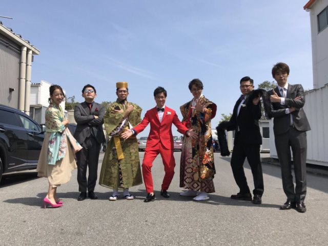 また、今回は、小滝ちゃんだけじゃなく、そぎちゃん、平林、クマの衣装協力をさせていただきました。小滝ちゃんはユナイテッドアローズ、そぎちゃん、クマはまさかのオレのタキシードとセットアップ、また平林は、香川の貸衣装屋さん、マリアージュコトブキ樫谷くん( @makoto_kashi )に、中川くん経由で急遽お願いして対応してもらいました。( ちなみにオレ、樫谷くんには3年前くらいのセミナーを聞いてくれただけで、会ってはいるんだけど、話した記憶はありません。ごめんね!)