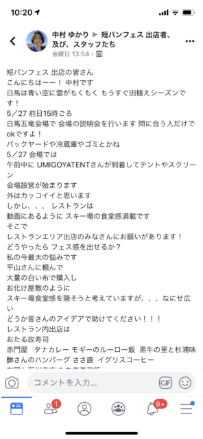 ゆかりさんを中心にたくさんの人が動いてくれてます。ありがとうございます。でもあんまり空回りしないようにね!大丈夫だから笑 オレが当日はちゃんとやるから。前日は15時に会場で出店者のみで説明会やります。まずはみんなでカンパイしよう!