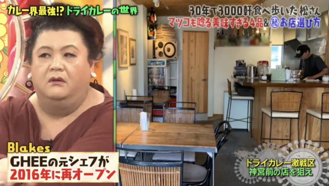 そう。昨夜、マツコの知らない世界でカレー特集( ドライカレー )が放送されてたらしいんですが、オレが足しげく通い、SNSで紹介し、もう何百人もの人がここを訪れたであろう神宮前のGHEE( 現Blakes )がめっちゃ混雑してました。