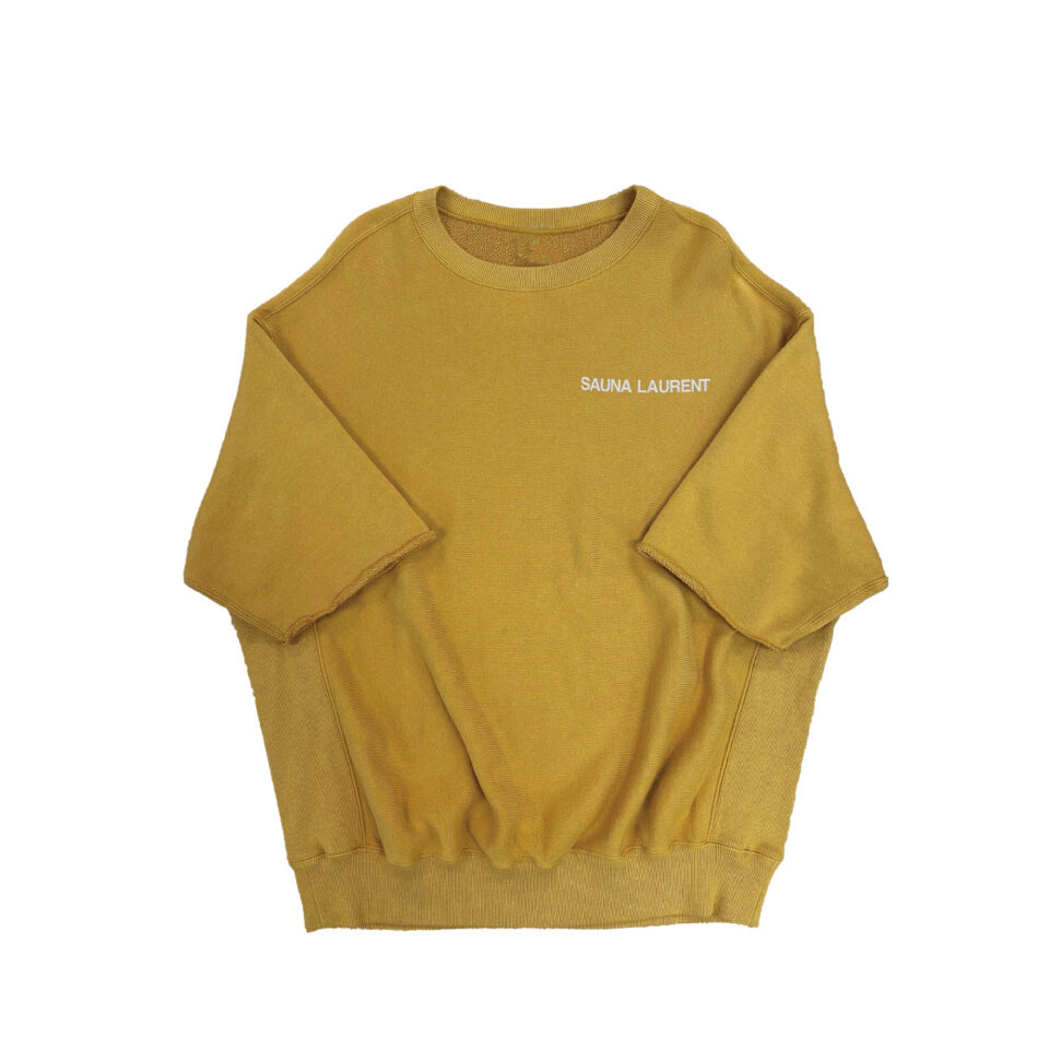 左胸の【 SAUNA LAURENT 】刺繍がポイント。ややゆとりのあるサイジングのクルーネックプルオーバーの袖をカットオフ加工した、サウナ前後はもちろんのこと、デイリー使いに大活躍間違いなしのリラックスウェア。ロンTをレイヤードしてベスト風な着こなしも◎