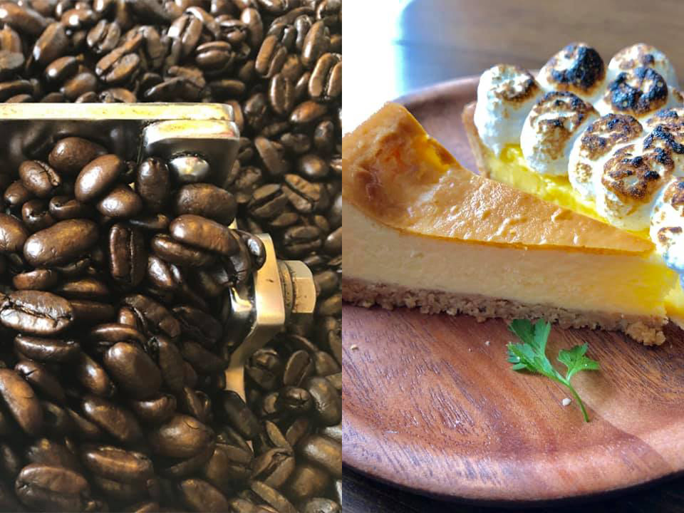オリジナルブレンドの試飲と豆販売。深みのあるすっきりとした後味が特徴です。ケーキは2種類をご用意。ハッピーシュガーのうちこさんから習ったチーズケーキとレモンと焦がしたメレンゲのタルト。