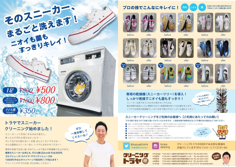 そのスニーカー、丸ごとキレイに洗います!ニオイも菌もスッキリ!その他、クリーニング保管サービスも行います!