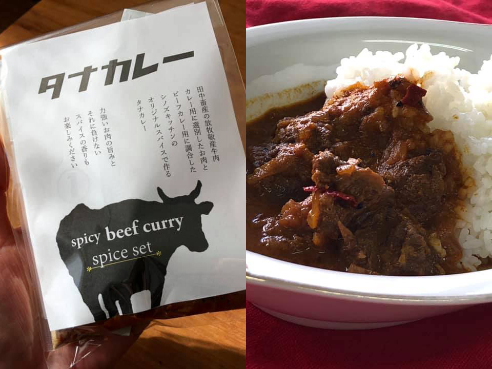 田中畜産の敬産放牧牛の牛スジ肉と、カレーが好きすぎる電気屋料理愛好家シノズキッチンの田中忍が調合したスパイスで作るビーフカレー。田中と田中コラボで「タナ☆カレー」。1,000食がSNSで即日完売したタナカレーが短パンフェスで1日限りの復活です。