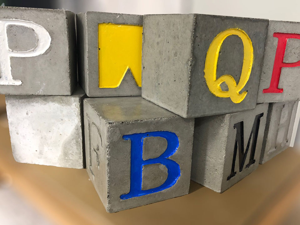 コンクリートで作ったアルファベットブロック。好きなローマ字と数字をお好みの色でオーダーできます!